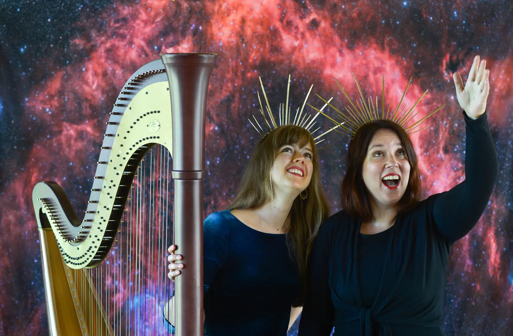 Ein Moderationskonzert mit weiblichem Blick auf den Himmel. Das Programm besteht ausschließlich aus Werken von Komponistinnen*, die größtenteils unbekannt, aber sehr hörenswert sind. Über die Biografien der Komponistinnen wird zwischen den Stücken berichtet. Es musizieren Jara Elena Egen, Konzertharfe und Hanna Szperalski, Mezzosopran. (Foto: Christine Rudolf)